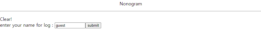 로그인 후 문제 페이지로 이동하여, 네모로직을 풀어준 후 이름을 입력하는 페이지로 이동합니다.